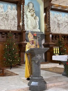 Նույն օրը Սրբազան Հայրը Սուրբ Պատարագ մատուցեց նաև Բելառեչենսկի Սուրբ Կույս Մարիամի ծննդյանը նվիրված նորակառույց հայ կաթողիկէ եկեղեցում։ Այն կառուցվեց և օծվեց 2019թ․։ Տեղի հայ համայնքը ևս խնդությամբ ընդունեց նոր Առաջնորդի այցելությունը։ Քարոզի ժամանակ Սրբազանն ուշադրություն հրավիրեց Սուրբ Ծննդյան և գալիք Աստվածահայտնության տոների խորհուրդների վրա։ Նրա խոսքով, ջրի օրհնության ժամանակ Խաչի կնքահայրը նման է հովիվներին և մոգերին, ովքեր գնացին Բեթղեհեմ՝ երկրպագելու Մանուկ Հիսուսին և մեծ ցնծությամբ հրեշտակների հետ միասին երգելու <<փա՜ռք ի բարձունս Աստուծոյ եւ յերկիր խաղաղութիւն>>։
