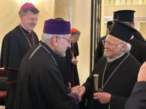 Հուղարկավորության պաշտոնական արարողությանը ներկա գտնվեց նաև Հայաստանի, Վրաստանի, Ռուսաստանի և Արևելյան Եվրոպայի Կաթողիկէ Հայոց Առաջնորդ Արհ. Տ. Գևորգ Արքեպս. Նորատունկյանը՝ ուղեկցությամբ Վրաստանի Ավագերեց Գերհ. Հ. Միքայել Ծ. Վրդ. Խաչկալյանի, Կաթողիկէ Եկեղեցու այլ բարձրաստիճան հոգևորականների պատվիրակության հետ միասին, որի կազմում էին Սուրբ Աթոռի Եկեղեցիների միության Վերատեսչության Նախագահ Կարդինալ Քուրթ Քոխը, Հայաստանում և Վրաստանում Պապական Նվիրակ Արքեպիսկոպոս Արհ. Տ. Անտե Յոզիչը՝ իր քարտուղար Ալիաքսանդր Ռահինիայի հետ միասին, և Կովկասի լատինածես կաթողիկէների Առաջնորդ Արքեպիսկոպոս Արհ. Տ. Ջուզեպպե Բազոտտոն: Արհ. Տ. Գևորգ Արքեպս. Նորատունկյանը կարճ ողջունատրության հանդիպում ունեցավ նաև Հույն Տիեզերական Ուղղափառ Եկեղեցու Պատրիարք Բարդուղիմեոս Առաջինի հետ: