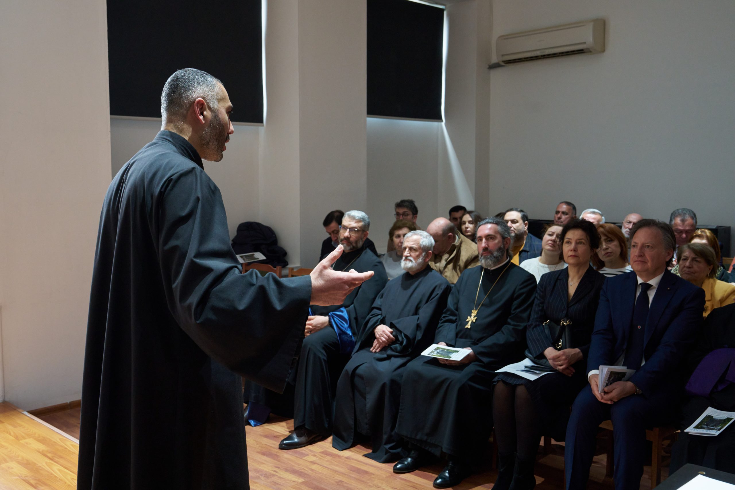 «Մեծ հուզումով է, որ այսօր ձեզ հետ եմ՝ այսպիսի մեծ անձնավորության նվիրված այսօրվա միջոցառմանը: Չգիտեմ, թե վերջին երեք հարուր տարիներին ուրիշ ում մասին է այսքան հիշատակվում հայ ազգի հավաքական հիշողության մեջ, որքան Մխիթար Սեբաստացի Աբբահոր: Այս անձը յուրահատուկ է, որ այնպիսի մի դրոշմ է թողնել այս երեք հարյուր տարիների ընթացքում, որ միշտ հայագիտական ուսումնասիրությունների կենտրոնում է: Բայց ես այսօր ուզում եմ առավել ձեր ուշադրությունը հրավիրել Մխիթար Սեբաստացու սրբության վրա, քան թե նրա թողած հսկայական մշաակութային ժառանգության վրա: Գիտեք, որ Կաթողիկէ Եկեղեցին հատուկ մի գործընթաց ունի՝ որևէ անձի Ընդհանրական Եկեղեցու սուրբ հռչակելու համար, և հիմա Մխիթար Աբբահոր սրբադասման գործընթացը բավական լավ է առաջ ընթանում: Հուսանք, որ մոտ ապագայում դա անպայման տեղի պիտի ունենա: Կուզենայի ասել, որ մեր հավաքական գիտակցության մեջ սուրբի և սրբության գաղափարը միշտ ընկերանում է հատուկ կարողության, օրինակ՝ հիվանդություններից բուժման հրաշքներին: Մխիթիար Աբբահոր պարագայում հիվանդությունների բուժման հիշատակություններ չկան, բայց ինքը և իր ընկերակից միաբանները, նրա աշակերտները ժրաջան մշակներն ու պահապանները եղան հայ մշակութային հսկա ժառանգության: Սա ևս սրբության հռչակման մի ճանապարհ է, որ Եկեղեցին անշուշտ ի նկատի առնում է մեծ ուշադրությամբ և սիրով: Անհերքելի է նաև Մխիթար Աբբահոր անձնական կյանքի սրբությունը, սրբակեցություն, որը լռության մեջ է մինչ օրս, չի բարձրաձայնվում մխիթարյան հայրերի կողմից: Բայց պետք չէ, որ մեր տեսադաշտից հեռու մնա այս թաքնված սրբությունը՝ հայ մշակույթին նվիրված խոնարհ անձի սրբությունը: Մխիթար Աբբահայրը սրբի տիպար է, որը պետք է ընդունել որպես կտակ և առատացնել, շարունակել: Նաև հատկանշական է, որ իր ամբողջ սուրբ առաքելությունը կատարել է օտար ափերում՝ աննկարագրելի դժվարություններով: Չգիտեմ, թե ուրիշ ինչ ժողովուրդ կա աշխարհում, որ հայի չափ պաշտամունք է ունեցել իր ու գրականության և այդ ոլորտի մշակների նկատմամբ: Հուսով ենք, որ Մխիթարյան Միաբանության վանքերում դեռ պիտի լինեն շատ երիտասարդեր, ովքեր կհագնեն Մխիթար Աբբահոր սքեմը և գոտին և կանցնեն ծառայության հայ ազգին և Աստծուն»: