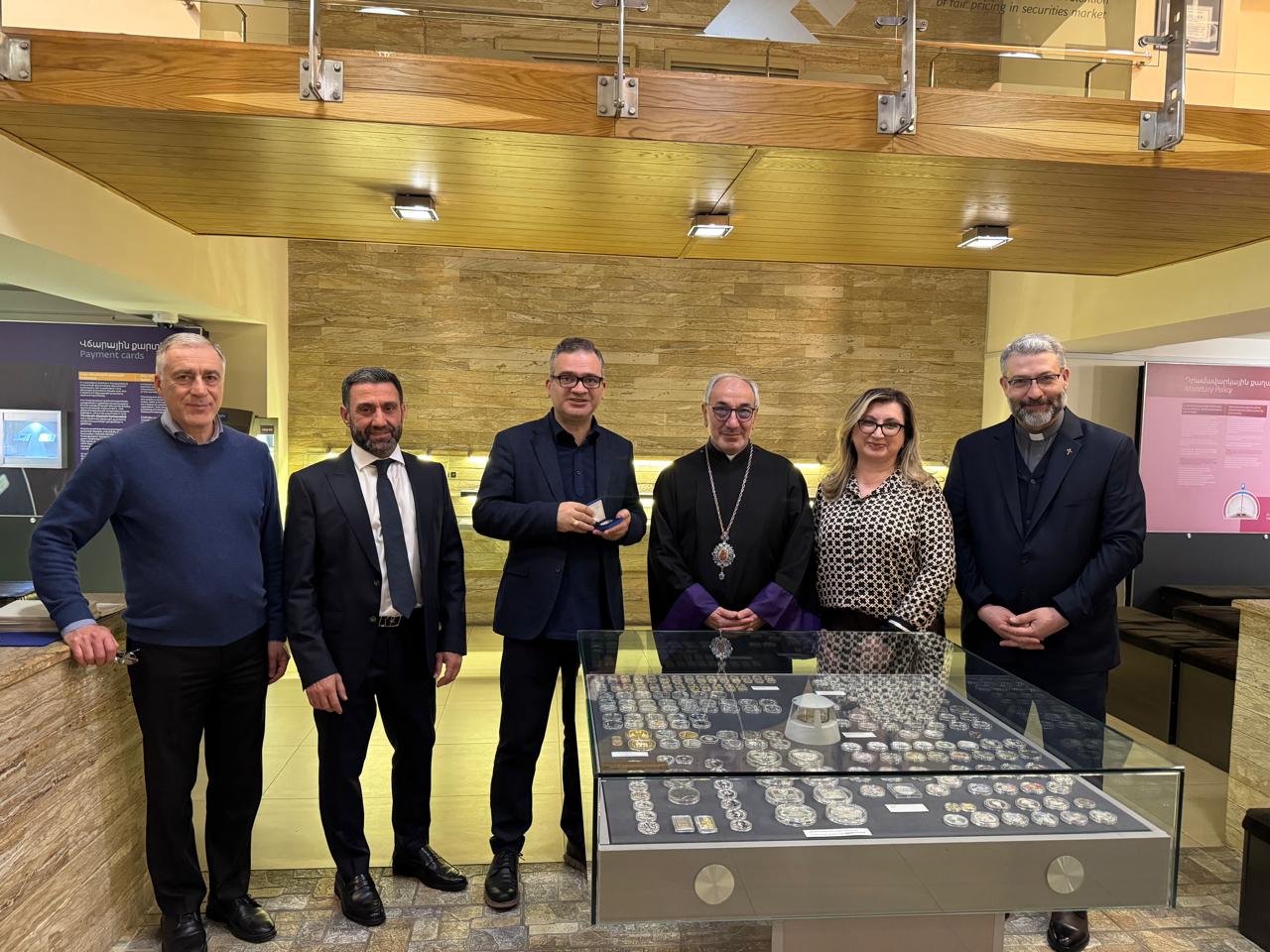 Կենտրոնական բանկի կառավարչի խորհրդական պրն. Դավիթ Նահապետյանը ներկայացրեց Մխիթար Սեբաստացու պատկերով նորահատ հուշադրամը, որից մեկ օրինակ Հ. Գևորգ Վրդ. Սարգսյանը նվիրեց նաև Արհ. Տ. Գևորգ Արքեպս. Նորատունկյանին: